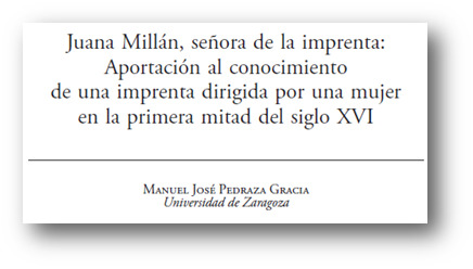 Juana Millán, señora de la imprenta : aportación al conocimiento de una imprenta dirigida por una mujer en la primera mitad del siglo XVI -