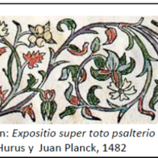 del libro manuscrito al impreso: uno de los ejemplares presenta la orla xilográfica miniada en colores rojo, azul y dorado, siguiendo la
